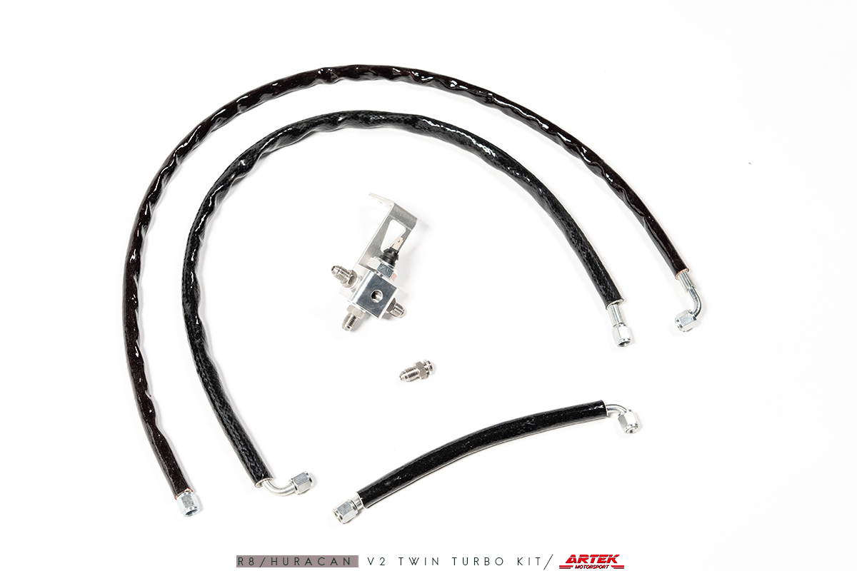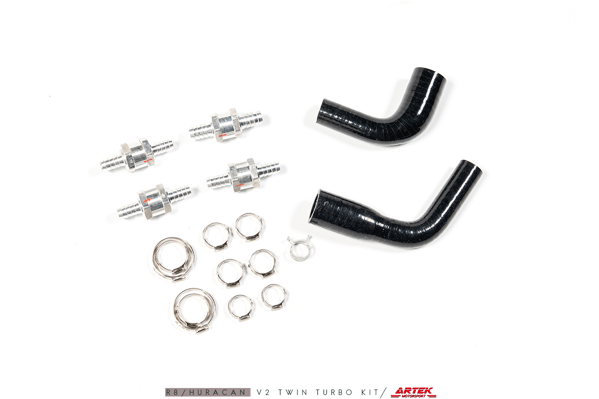 The ARTEK Huracan V2 Twin Turbo Kit is a complete high-performance forced induction upgrade for Lamborghini Huracán V10 engines. This bolt-on turbo system includes Precision Gen2 6870 turbos, custom heat exchangers, water-cooled intercoolers, wrapped downpipes, stainless exhaust sections, dual wastegates, and blow-off valves engineered for maximum flow and heat dissipation. Designed for easy installation and enhanced power delivery, this kit requires professional tuning for optimal performance, offering significant horsepower gains and improved boost response for both street and track applications.