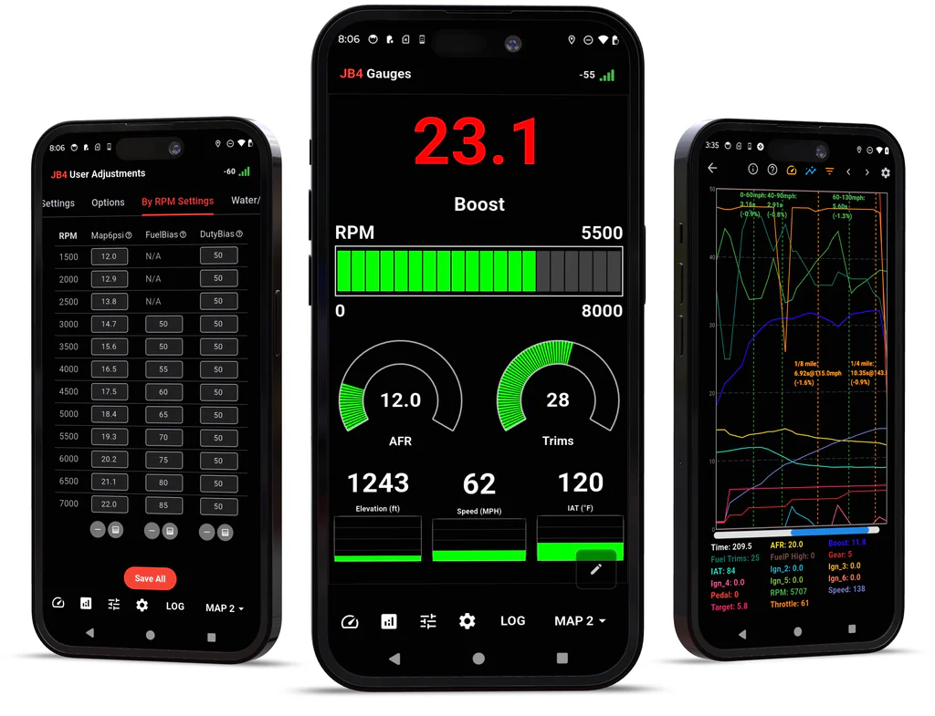 Unlike basic performance chips, the JB4 features comprehensive CANbus connectivity. This allows the unit to access critical engine data in real-time, offering advanced tuning capabilities such as direct Air/Fuel Ratio (AFR) control, boost mapping by gear for perfect traction, and integrated safety systems to monitor engine knock and fuel trims.